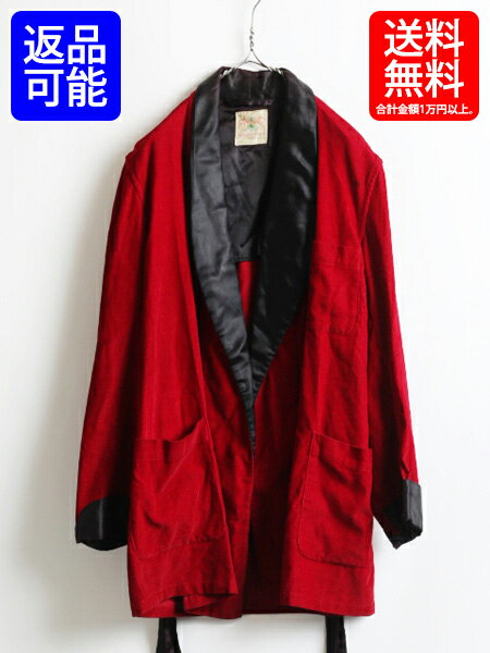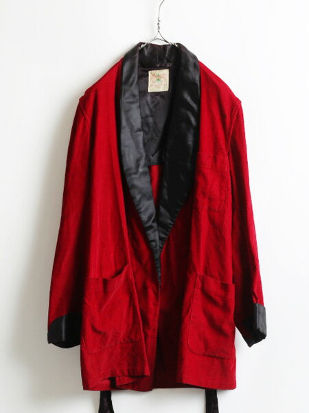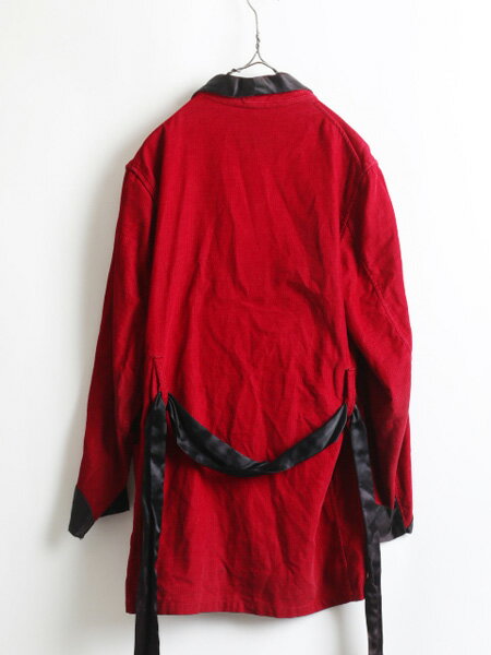 60's ★ State-O-Maine x Abraham & Straus ステイトメイン バイカラー コーデュロイ ガウン ( メンズ 男性 S程 ) 60年代 ビンテージ 古着| 【US古着】【古着】中古 アメリカ古着 古着屋 レッド ブラック 赤 黒 赤色 黒色 コールテン コール天 2トーン ツートン ツートーン