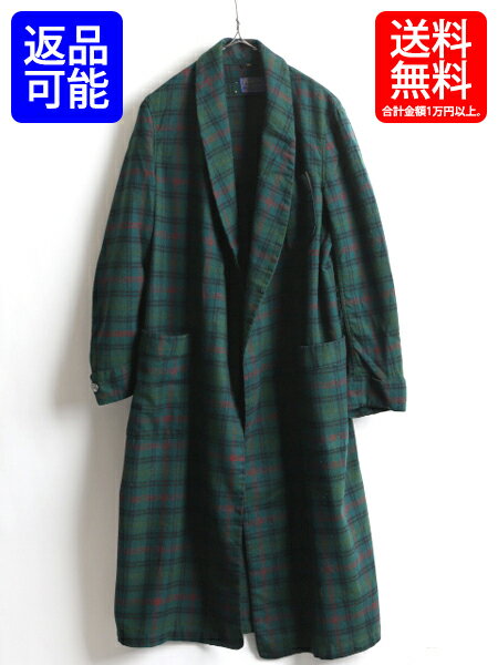 60's USA製 ビンテージ 希少サイズ S ■ PENDLETON ペンドルトン チェック 柄 ウール ガウン ( メンズ 男性)古着 アメリカ製 コート ローブ| 【USA古着】中古 アメリカ製 60年代 ロング ルームウェア ロングガウン ガウンコート ロング丈 コート グリーン レッド ブラック