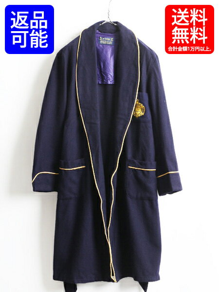 デッドストック 新品 60's 70's ビンテージ ■ NAVAL ACADEMY 海軍兵学校 USNA ワッペン 刺繍 パイピング ウール ガウン ( メンズ M ) 古着| 【USA古着】 新古品 ネイビー NAVY ロング ローブ コート ルームウェア ロングガウン ウールガウン 紺 男性 バスローブ エンブレム