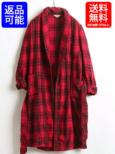 60's ビンテージ ■ PILGRIM ピルグリム チェック 織り柄 ウール ガウン ( メンズ 男性 M ) 古着 ロング コート 赤 60年代 シアーズ ローブ| 【USA古着】中古 ルームウェア ロングガウン ガウンコート ウールコート ロング丈 ウールガウン レッド ベルト付き パチポケ
