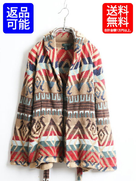 手編み ■ LAUREN ラルフローレン ショールカラー ネイティブ ハンドニット ガウン ( レディース M メンズ S 程) 古着 ポロ POLO ニット| 【USA古着】 RALPH LAUREN ロングカーディガン カーディガン ローブ 長袖セーター 長袖ニット 男女兼用 コットン リネン マルチ