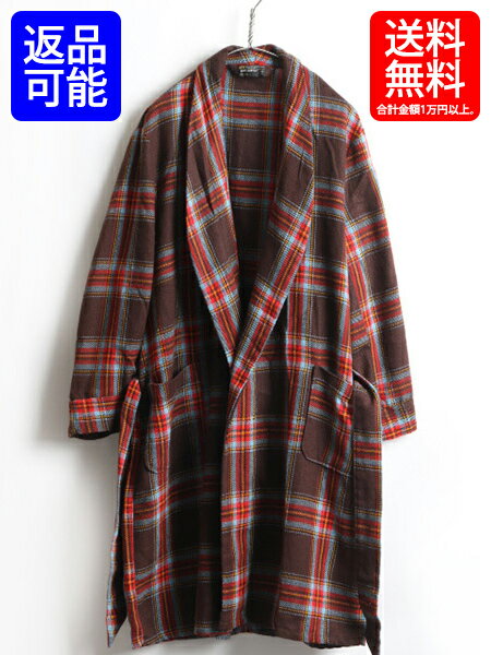 90's USA製 最上級 SIR PENDLETON ■ ペンドルトン チェック ウール ガウン ( 男性 メンズ M ) 古着 90年代 ロング ローブ ガウンコート | 【USA古着】中古 オールド アメリカ製 ルームウェア ロングガウン ロング丈 ウールガウン マルチカラー ベルト付き コート