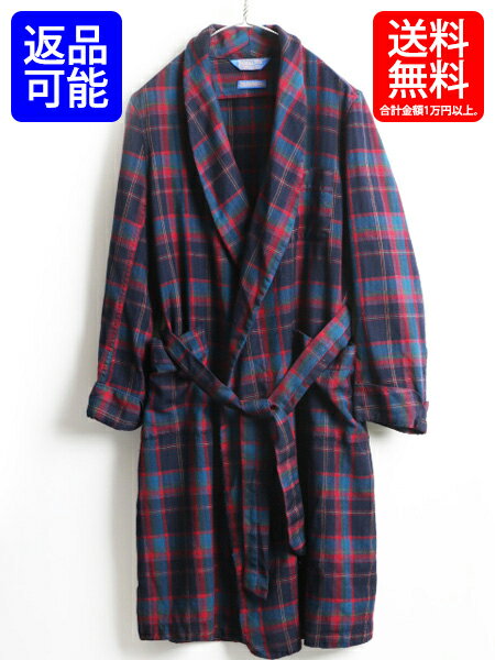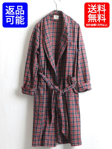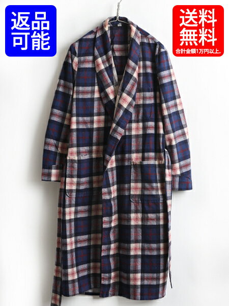 60's ビンテージ ■ モンゴメリーワード Montgomery Ward チェック プリント フランネル ガウン ( メンズ M ) 古着 60年代 ロング コート| 【USA古着】中古 男性 ルームウェア ロングガウン ガウンコート ロング丈 レッド ネイビー 赤 紺 ローブ プリネル ネルシャツ ネル