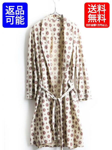 50's 60's ビンテージ ■ B.V.D. 総柄 ポケット付き レーヨン ロング ガウン コート ( 男性 メンズ M ) 古着 ロングコート ロングガウン| 【USA古着】中古 ルームウェア ガウンコート ジャケット ベルト付き ローブ ロング丈 羽織り ビーブイディー 60年代 50年代