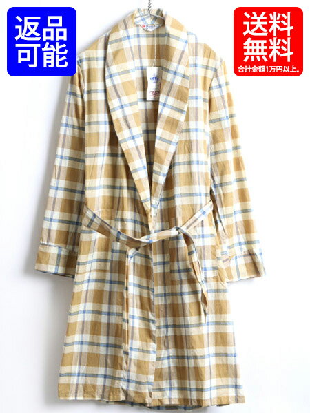 タグ付き 新品 60's ビンテージ 希少サイズ S ■ Royal Crest Casuals チェック ロング ガウン コート ( 男性 メンズ ) 古着 ロングコート| 【新古品】中古 60年代 ルームウェア ロングガウン ガウンコート ロング丈 ローブ マスタード イエロー ブルー 黄 デッドストック