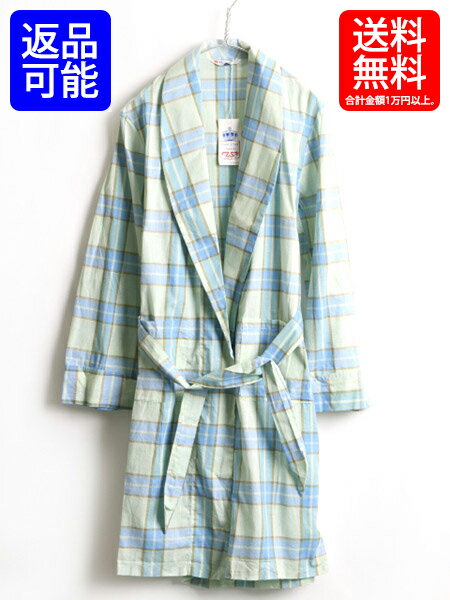 タグ付き 新品 60's ビンテージ 希少サイズ S ■ Royal Crest Casuals チェック ロング ガウン コート ( 男性 メンズ ) 古着 ロングコート| 【新古品】中古 60年代 ルームウェア ロングガウン ガウンコート ロング丈 ローブ ブルー ライト グリーン 青 緑 デッドストック