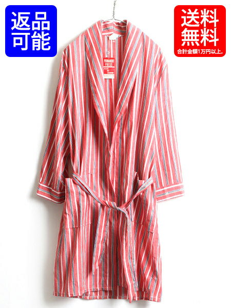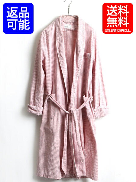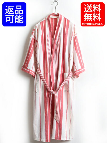 80's 90's ■ Christian Dior クリスチャン ディオール ストライプ 半袖 ロング ガウン コート ( 男性 メンズ L 程) 古着 ロングコート | 【USA古着】中古 80年代 90年代 ローブ ルームウェア ロングガウン ガウンコート ジャケット ベルト付き ポケット付き 白 赤