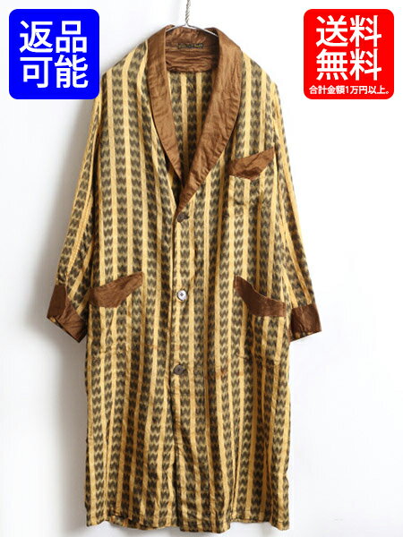 60's ビンテージ ■ ブランド不明 ヘリンボーン織り ストライプ サテン ロング ガウン コート (男性 メンズ M 程) 古着 ロングコート 黄 黒| 【USA古着】中古 60年代 ルームウェア ロングガウン ガウンコート ロング丈 ローブ イエロー ブラック ブラウン 茶