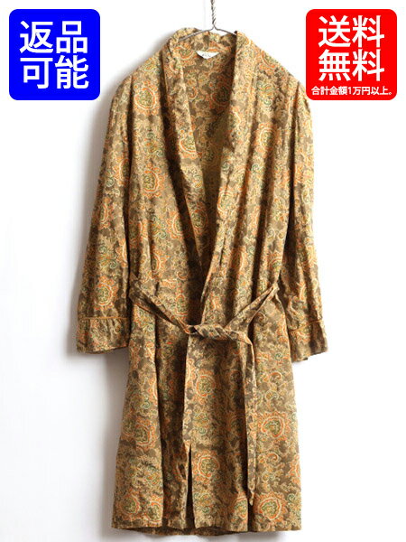 60's ビンテージ ■ ELITE ペイズリー 総柄 コットン ロング ガウン コート ( 男性 メンズ L ) 古着 ロングコート 60年代 ロング丈 ローブ| 【USA古着】中古 60年代 ルームウェア ロングガウン ガウンコート ペイズリー柄 ブラウン イエロー 茶 黄 マルチカラー