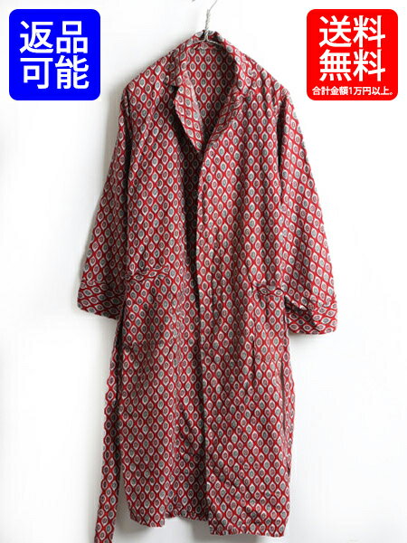 50's ビンテージ ■ WELDON 総柄 コットン ロング ガウン コート ( 男性 メンズ S 程) 古着 ロングコート 50年代 ロング丈 ローブ エンジ | 【USA古着】中古 ルームウェア ロングガウン ガウンコート マルチカラー ベルト付き 薄手 レッド