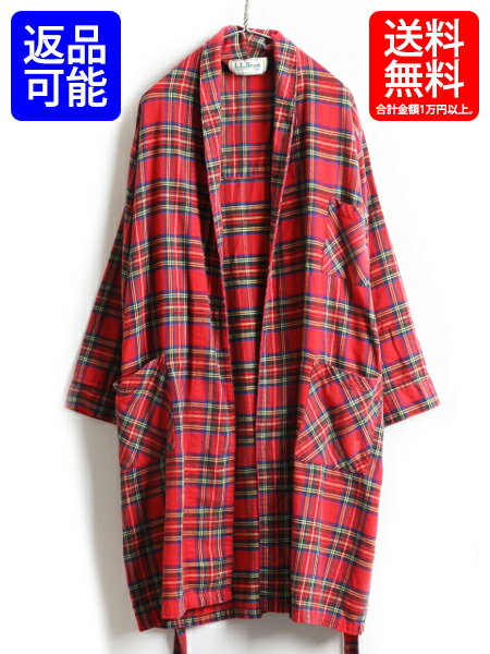 80's ビンテージ USA製 ■ LLビーン チェック フランネル ロング ガウン コート ( メンズ M ) 古着 ロングコート 80年代 L.L.BEAN 旧タグ| 【古着】中古 ルームウェア ロングガウン ガウンコート ジャケット ローブ ポケット付き タータンチェック エルエルビーン 男性