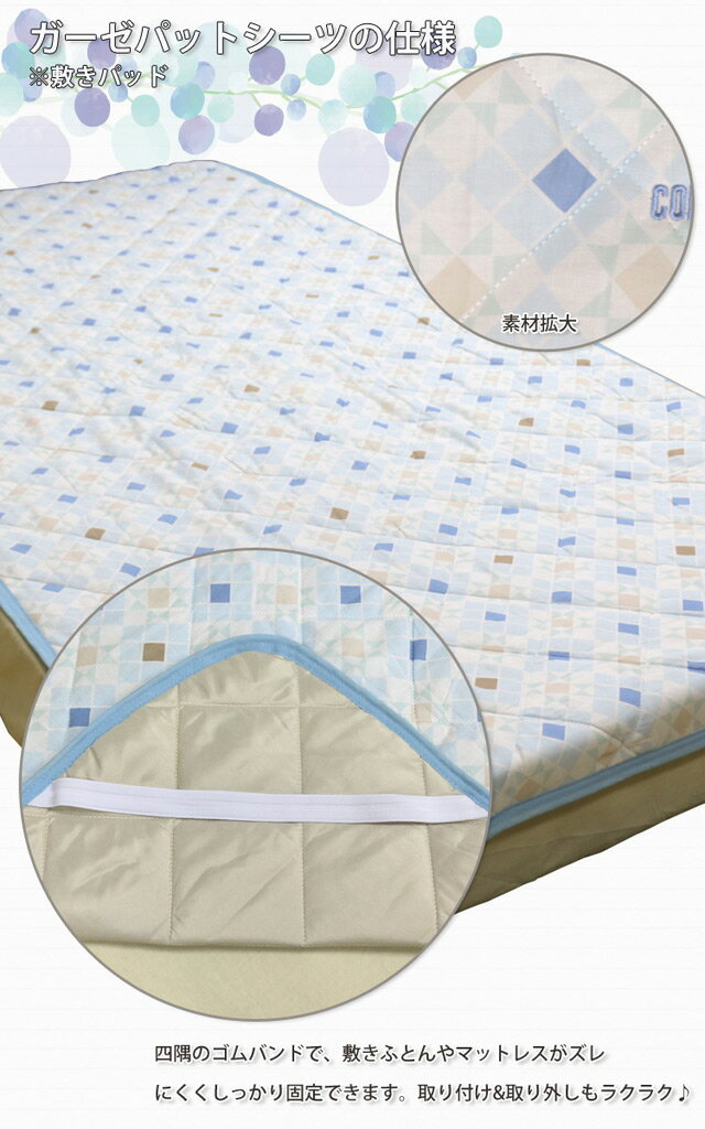 西川 有名人気ブランド ガーゼ敷きパッド シングル(モザイク柄)/100×205cm/ガーゼパットシーツ 昭和西川